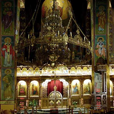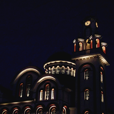 Μελέτη και υλοποίηση εξωτερικού και εσωτερικού φωτισμού ιερού ναού Αγίου Νεκταρίου Λάρισας. Χρησιμοποιήθηκε τεχνολογία LED.
